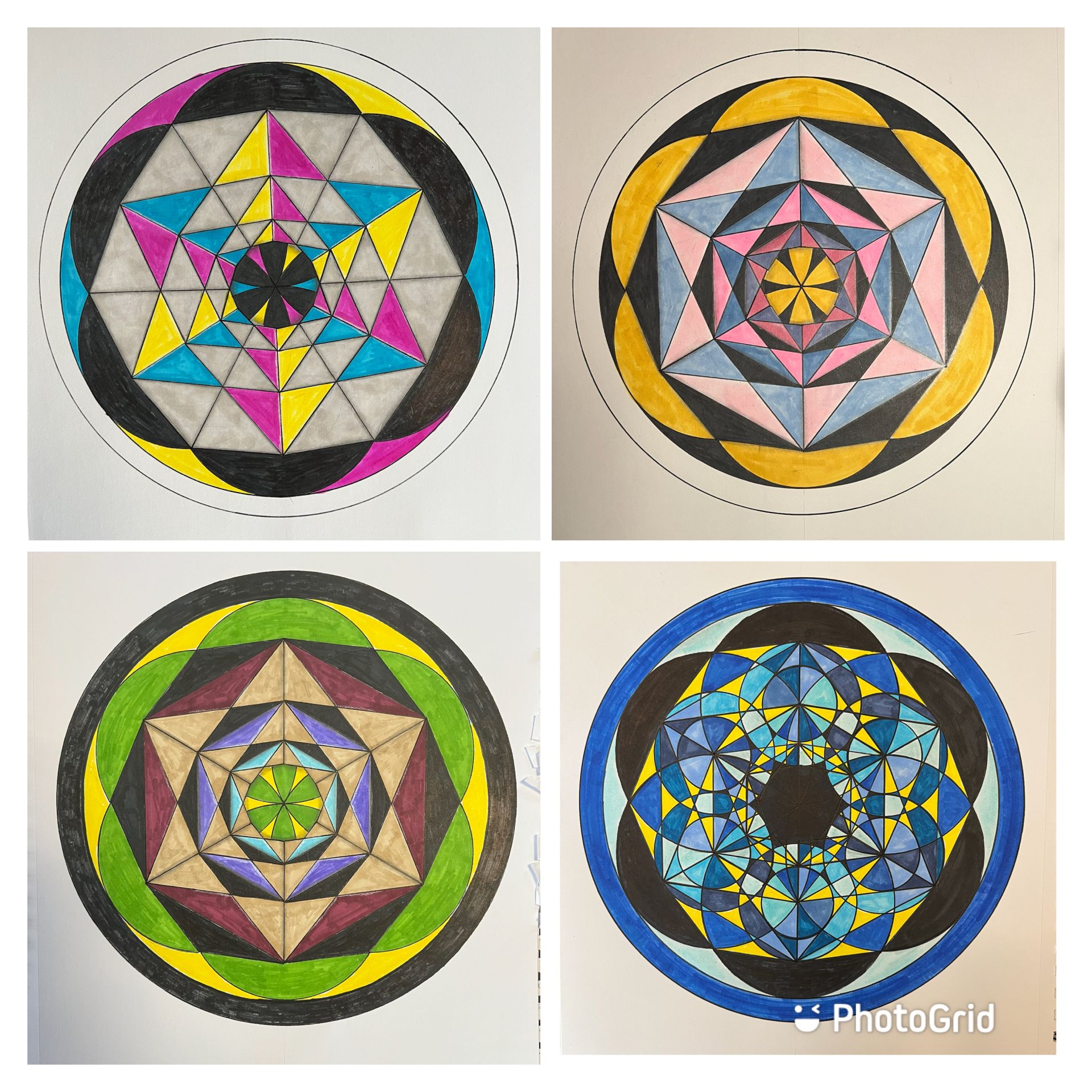 Instructional videos guide participants step by step to draw beautiful, geometric mandalas using compass and straightedge, and Knew Geometry techniques and methods. The instruction provided for the framework of the mandalas leaves openness for individual creativity to come in to play for coloring and creating the finished product.